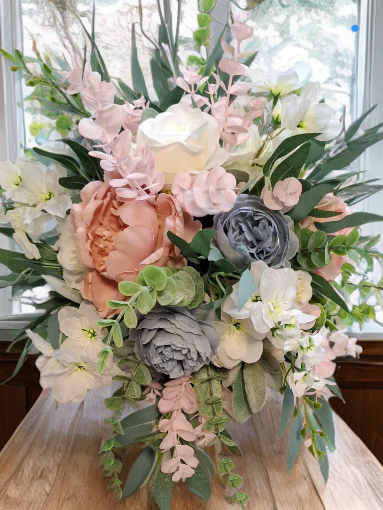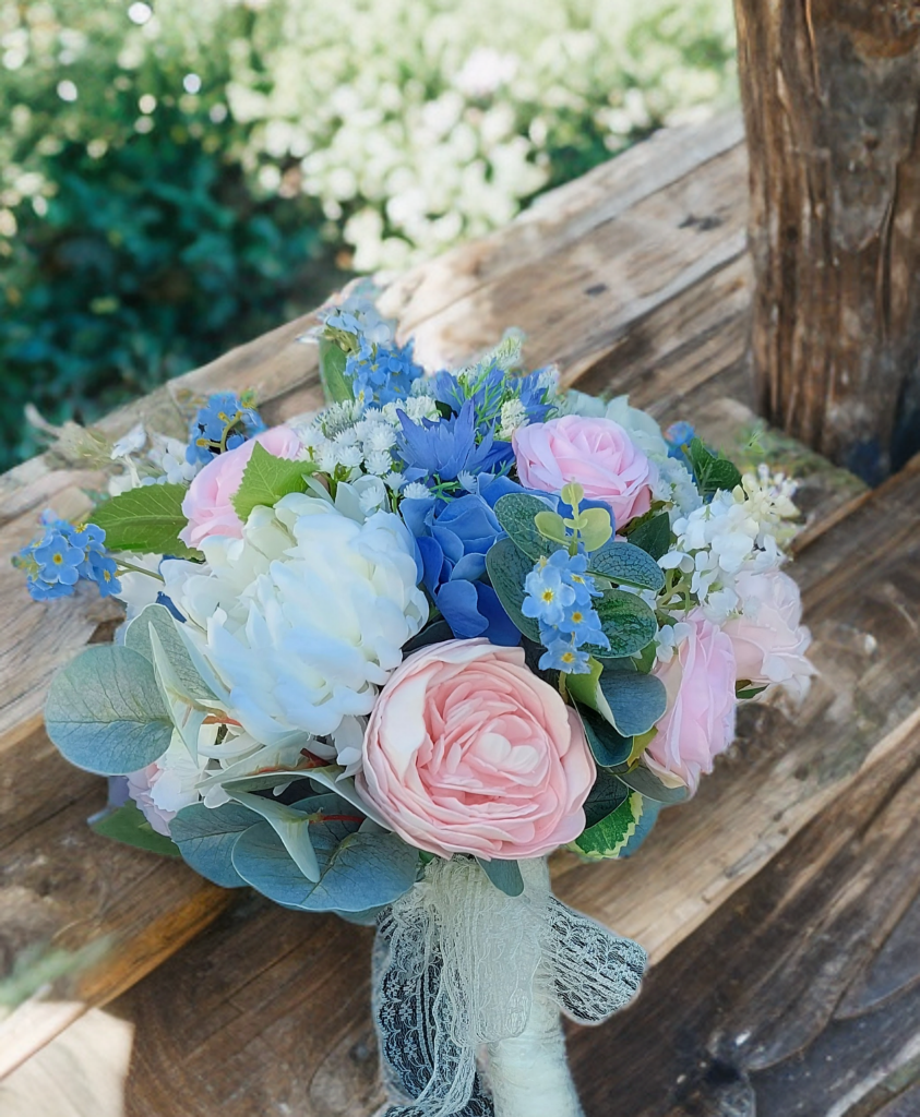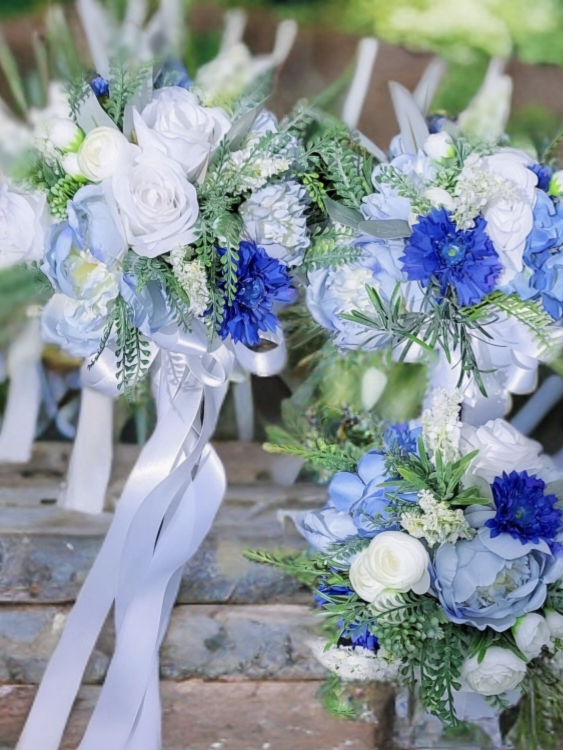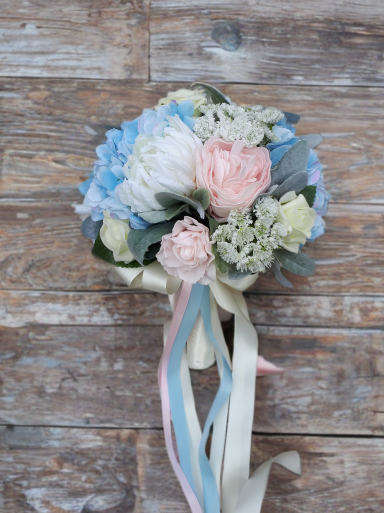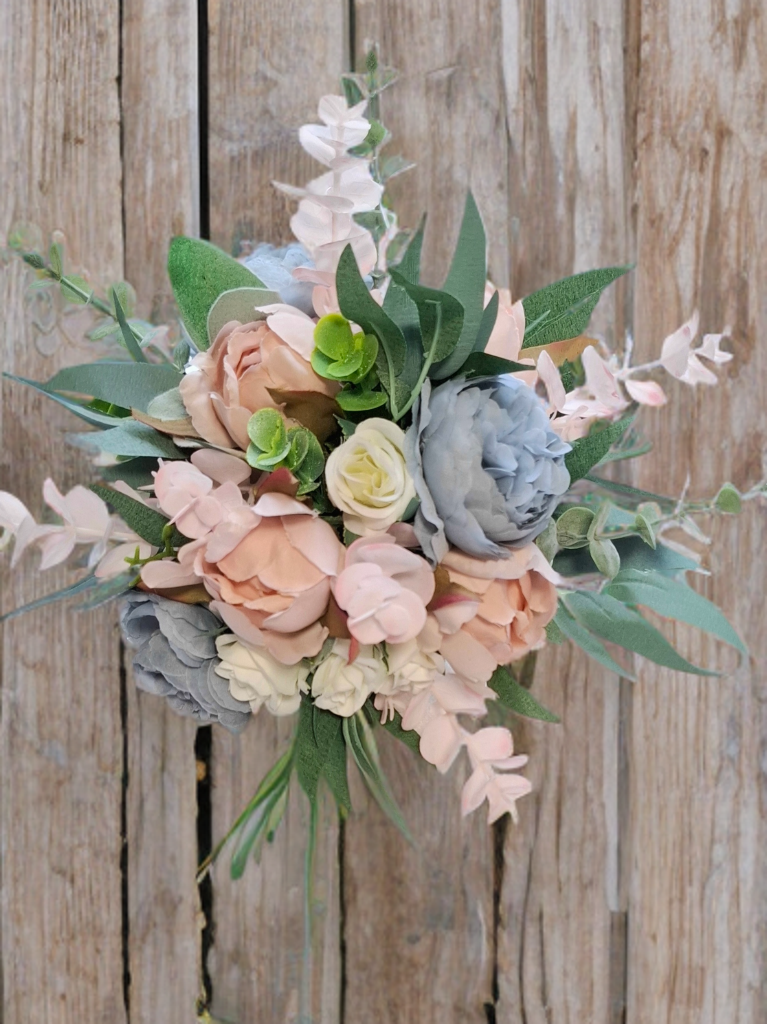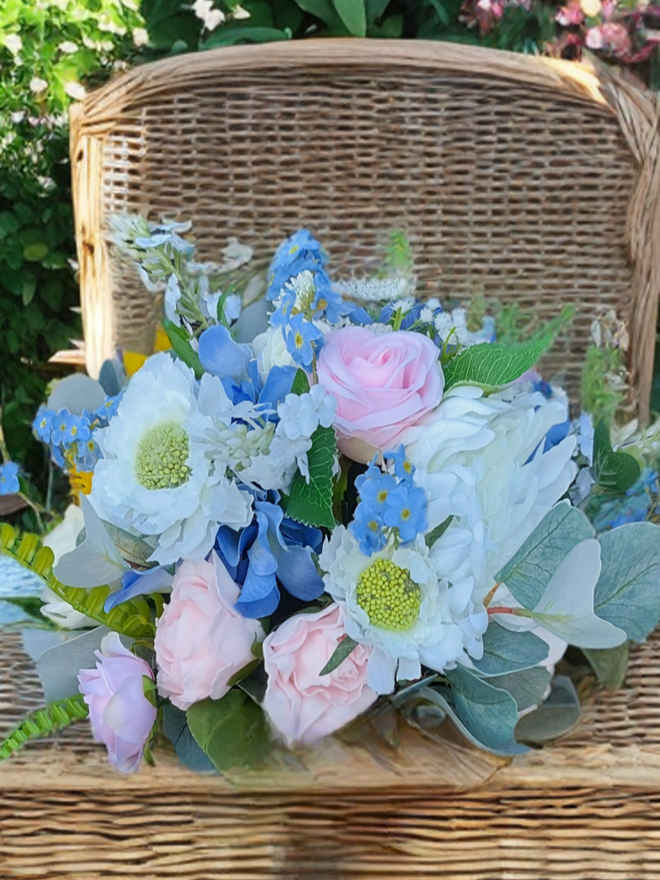 Bring your wedding dreams to life with our Pastel Bliss Collection — a delicate blend of soft romance and timeless beauty. Featuring artificial pastel blooms in shades of pale pink, pale blue, and ivory, this collection is beautifully complemented by lush grey-green foliage for a naturally elegant look.